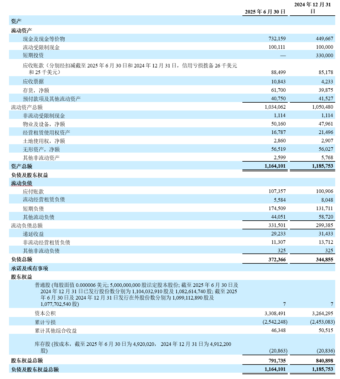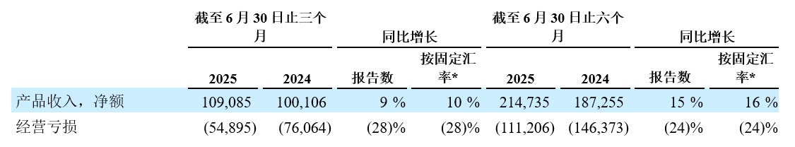 - 2025年第二季度的亏损净额为4,070万美元,归属于普通股股东的每股普通股亏损为0.04美元(每份美国存托股份(ADS)亏损为0.37美元),2024年同期亏损净额为8,030万美元,每股普通股亏损0.08美元(每份ADS亏损为0.82美元)。亏损净额减少主要是由于产品收入的增长快于净运营开支。